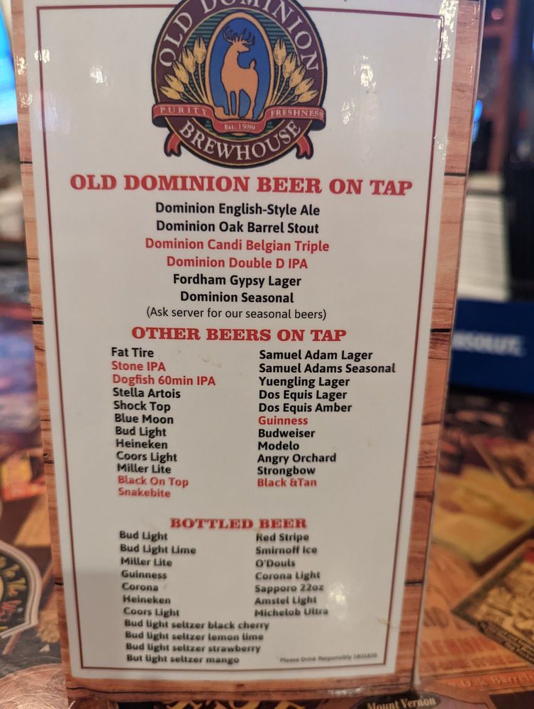 Introducing Old Dominion Brewhouse, a beloved spot in Hyattsville, MD known for its chill vibe, strong drinks, and delicious food. With a variety of offerings including happy hour specials, full bar, outdoor seating, and excellent service, this brewery is a go-to destination for many. Customers rave about the great prices, friendly environment, and tasty dishes like the cheesesteak, wings, and seafood options. The bar atmosphere is praised for its cool energy and welcoming staff, making it a perfect spot for drinks or a good time with friends. Overall, Old Dominion Brewhouse is a fantastic choice for affordable and satisfying meals, especially during their popular happy hour on Saturdays.